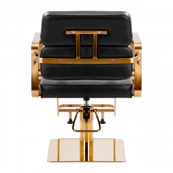 PORTO GOLD är en modern frisörstol som kombinerar funktionalitet och elegans. Klädsel är tillverkad i svart antibakteriellt konstläder av hög kvalitet som är lätt att rengöra. Förvandla kundens besök i hårsalongen till en uppskattad upplevelse med denna komfortabla kundstol.