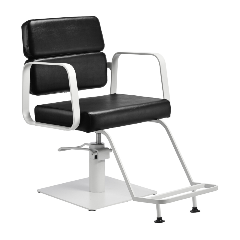 PORTO är en modern frisörstol som kombinerar funktionalitet och elegans. Klädsel är tillverkad i svart antibakteriellt konstläder av hög kvalitet som är lätt att rengöra. Öppningen mellan ryggstöd och sits som gör det lätt att hålla rent och snabba upp förberedelserna mellan kunder. Förvandla besök i hårsalongen till en uppskattad upplevelse med denna komfortabla kundstol.
