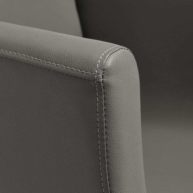Mataro kundstol kombinerar modern elegans med praktisk användbarhet. Den gråa klädseln i tåligt konstläder ger ett exklusivt utseende och är enkel att hålla ren. Den runda basen med svart finish skapar ett stilrent och balanserat helhetsintryck. För att ge bästa möjliga arbetsposition är stolen utrustad med en låsbar hydraulpump som gör höjdjusteringen smidig och exakt. Den mjukt stoppade sitsen med högdensitetsskum erbjuder hög komfort för kunden, även under längre behandlingar.