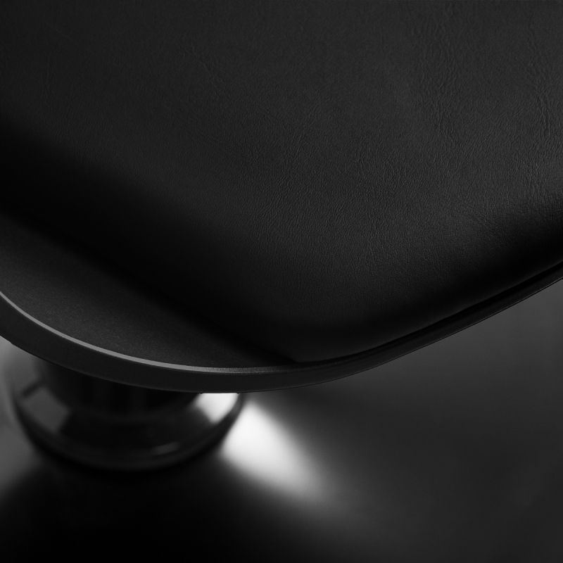 Halo Noir kundstol utmärker sig med sin minimalistiska design och smarta funktioner. Den svarta, slitstarka klädseln i lättskött konstläder ger ett elegant och professionellt uttryck. Den runda basen i svart finish skapar ett stilrent helhetsintryck som passar utmärkt i alla typer av frisörsalonger. Med den låsbara hydraulpumpen kan höjden enkelt anpassas för optimal arbetsställning, och den bekväma sitsen erbjuder god komfort även under längre behandlingar.