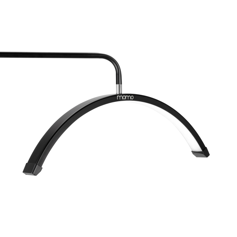 Egenskaper - modern, minimalistisk design i stilren svart nyans - unikt bågformat huvud som sprider skuggfri belysning - LED-dioder med 7 intensitetsnivåer och 2 färgtemperaturer (3200-5600 K) - bländar inte ögonen tack vare en halvtransparent lamppanel - flexibel inställning av position tack vare justerbar höjd och roterbart huvud - två fjärrkontroller med justering av ljusets färg och intensitet - telefonhållare som möjliggör inspelning av video för att dokumentera och dela ditt arbete - lätt montering och medföljande resväska gör lampan perfekt för arbete på resande fot