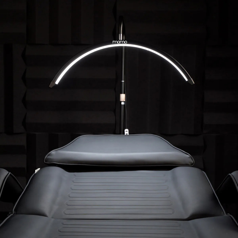 Behandlingslampan GLOW MX6 med ett unikt bågformat huvud ger utmärkt, skuggfri belysning under behandlingar som kräver precision. Lampan är fylld med justerbara LED-dioder med 7 intensitetsnivåer och 2 färgtemperaturer. Den halvtransparenta ytan på panelen sprider ljuset jämnt, tack vare vilken lampan inte bländar ögonen. Arbetslampans stativ justeras enkelt i intervallet 140-180 cm med hjälp av en låsskruv som sitter på armen. Detta gör att du kan anpassa huvudets position till användarens individuella behov och olika typer av kosmetiska stolar, soffor eller behandlingsbord, och samtidigt få utmärkt belysning av arbetsplatsen.