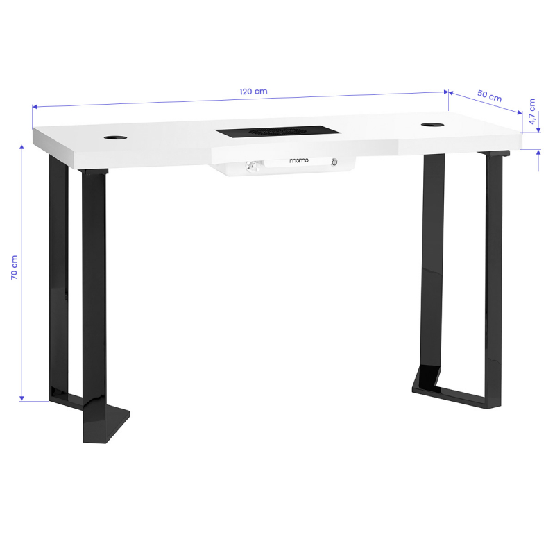 Manikyrbordet MOMO 05-BL är ett utmärkt val för professionella nagelsalonger som söker både funktion och stil. Det har en modern, högblank vit design med eleganta svarta bordsben som ger arbetsplatsen en exklusiv känsla. Praktiska detaljer som integrerade kabelhål och möjlighet till tillbehörsmontering bidrar till en organiserad och effektiv arbetsmiljö.