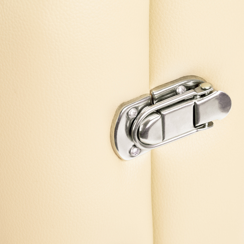 Smidig massagesäng med stabil, lätt aluminiumstomme, hål för ansiktet, justerbart nackstöd samt avtagbara armstöd. Klädsel är tillverkad i krämfärg antibakteriellt konstläder av hög kvalitet som är lätt att rengöra. Behandlingssängen är hopfällbar så att den får plats i väskan för smidigare transport. Perfekt för professionella skönhetsbehandlingar som massage och kiropraktik på klinik eller studio.