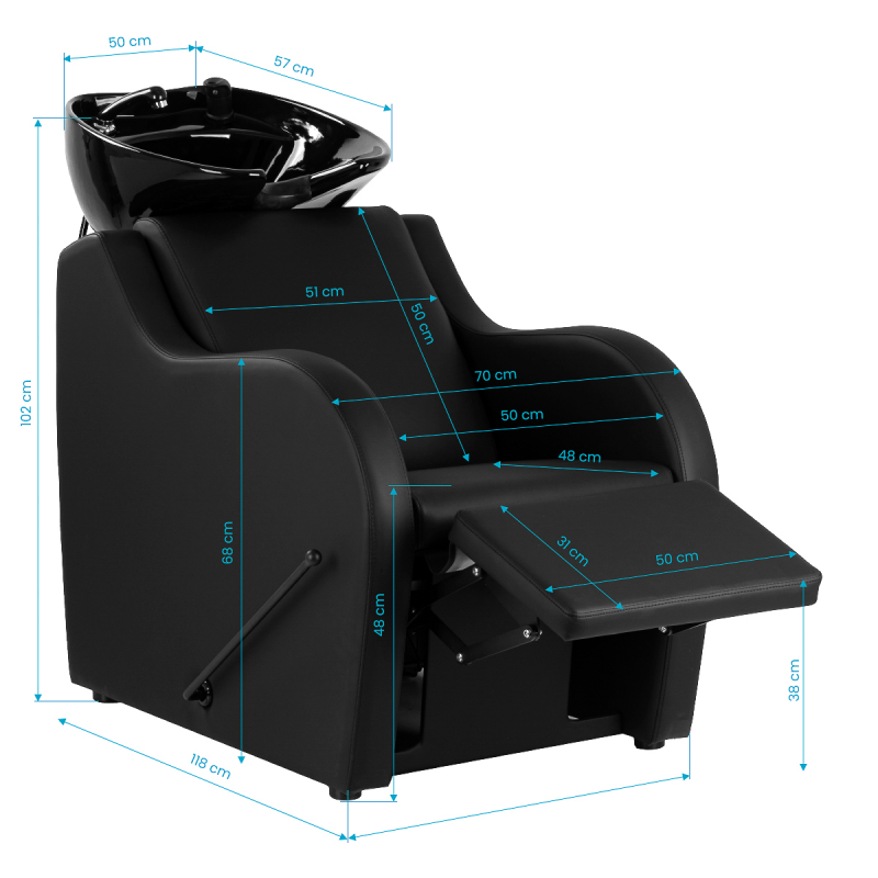 Gabbiano Carmen är en modern och funktionell schamponeringsstol utrustad med ett justerbart fotstöd som säkerställer optimal komfort för kunden under hårtvätt och behandlingar. Den djupa, svarta keramiska skålen är hållbar, motståndskraftig mot repor och missfärgning, och enkel att rengöra. Det ergonomiska ryggstödet och det korrekt profilerade nackstödet ger utmärkt stöd, även vid längre behandlingar. Utrustad med en stilren vattenblandare och dusch samt en dold vattenanslutning i basen för ett rent och professionellt utseende.