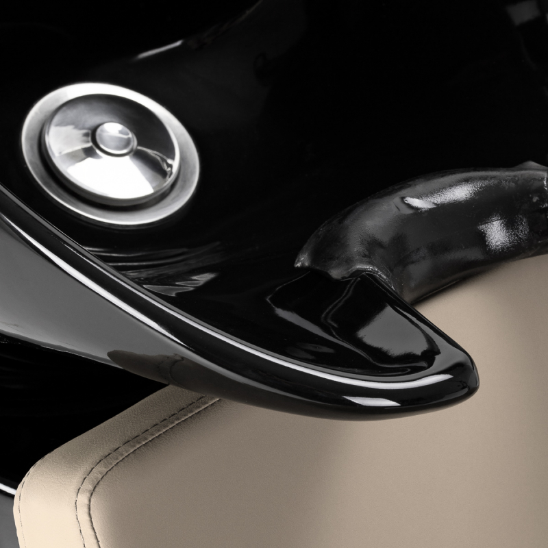 Den trendiga schamponeringsstolen VITORIA kombinerar en elegant design med praktisk funktion. Stolen är klädd i gråbeige, antibakteriellt konstläder av hög kvalitet, ett slitstarkt och lättskött material som passar perfekt i en frisörsalong. Den robusta svarta basen kompletteras av en keramisk tvättskål i tåligt material som står emot fläckar, repor och kemikalier, vilket gör stolen både hållbar och enkel att underhålla i det dagliga frisörarbetet.