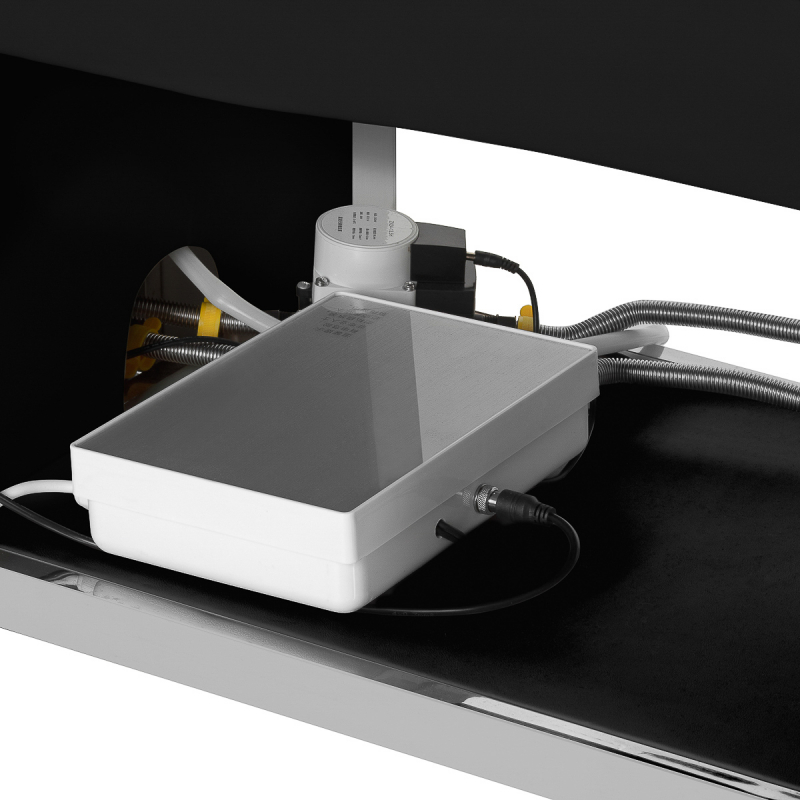HEAD SPA 017 är en unik kombination av schamponering och massagebänk som är särskilt utformad för avancerade behandlingar där vattenmassage och ångterapi samverkar för att skapa en holistisk upplevelse av avslappning och återhämtning. Den djupa, vita keramiska skålen och gummerat nackstöd med justerbar vinkel ger en optimal hårtvättsupplevelse. Massagebänken är ergonomiskt utformad med slitstarkt skum och konstläder för korrekt kroppsstöd under behandlingar. En kudde med hål för ansiktet gör den idealisk även för massage och ansiktsbehandlingar. Förvaringsutrymmet för handdukar och tillbehör hjälper till att hålla arbetsplatsen organiserad.