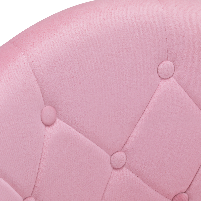 Elegant sammetsstol med quiltad design på en höj- och sänkbar bas i guldnyans, klädd i komfortabel rosa sammet. Perfekt för professionella skönhetssalonger, nagelsalonger, kontorsmiljöer, mottagningar och receptioner, samt för hemmabruk i vardagsrummet eller på hemmakontoret.